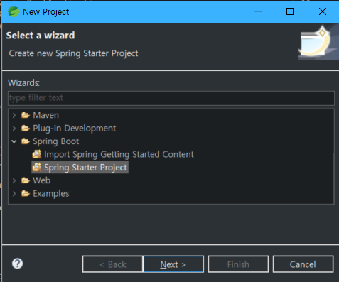 1) [File] -> [New] -> [Project] 에서 spring Starter Project 클릭 후 [Next]